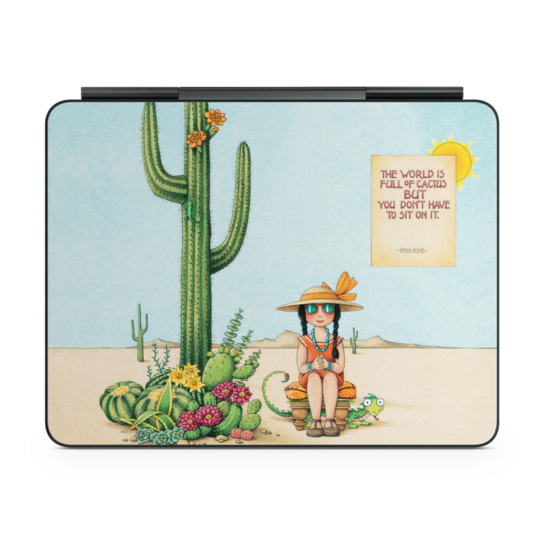 iStyles Magic Keyboard for iPad Series Skin design of Cartoon, Cactus, Illustration, Animated cartoon, Plant, Vegetable, Fictional character, Art, with green, yellow, pink, orange, brown colors, and tagged with people, animals, flowers, nature.