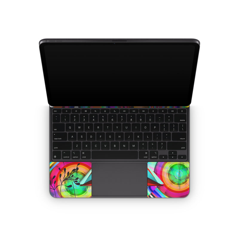 iStyles Magic Keyboard for iPad Series Skin design of Psychedelic art, Pattern, Design, Graphic design, Colorfulness, Visual arts, Circle, Art, with red, pink, green, yellow, orange colors, and tagged with patterns, abstract.