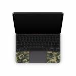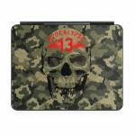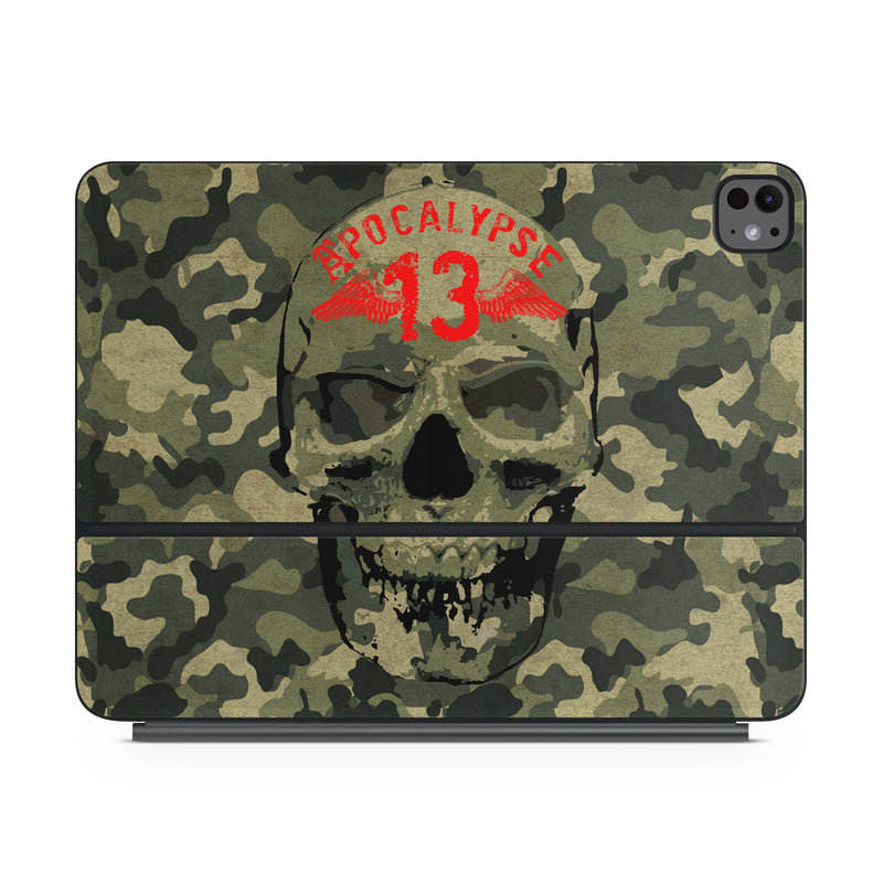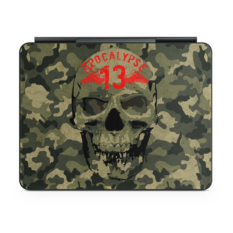iStyles Magic Keyboard for iPad Series Skin design of Bone, Jaw, Art, Font, Skull, Snout, Visual arts, Pattern, Graphics, Graphic design, with black, green, red colors, and tagged with skulls, signs, military, patterns, fantasy, apocalypse, thirteen, military, camo.