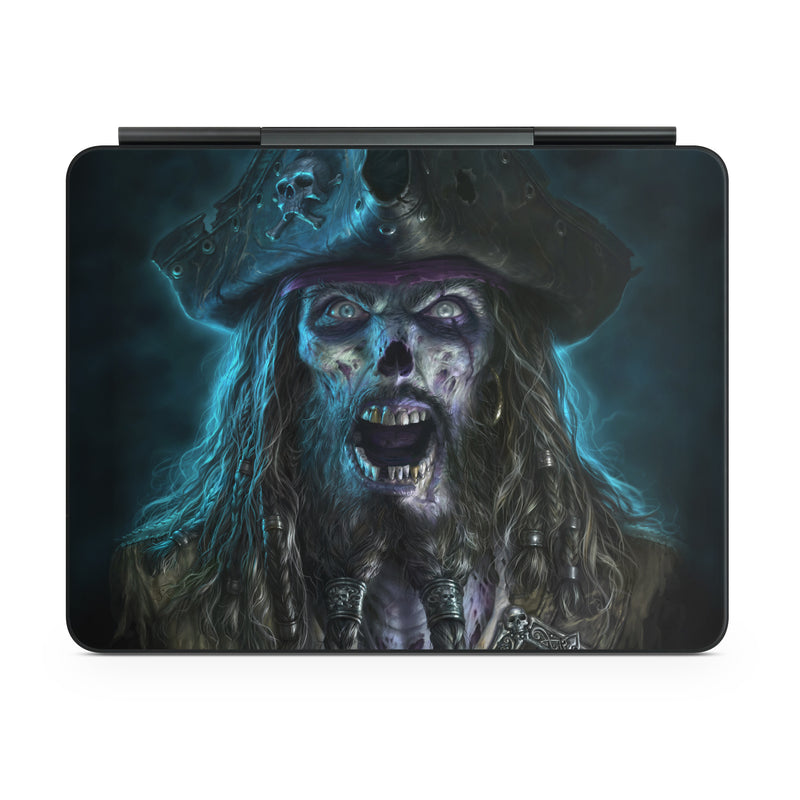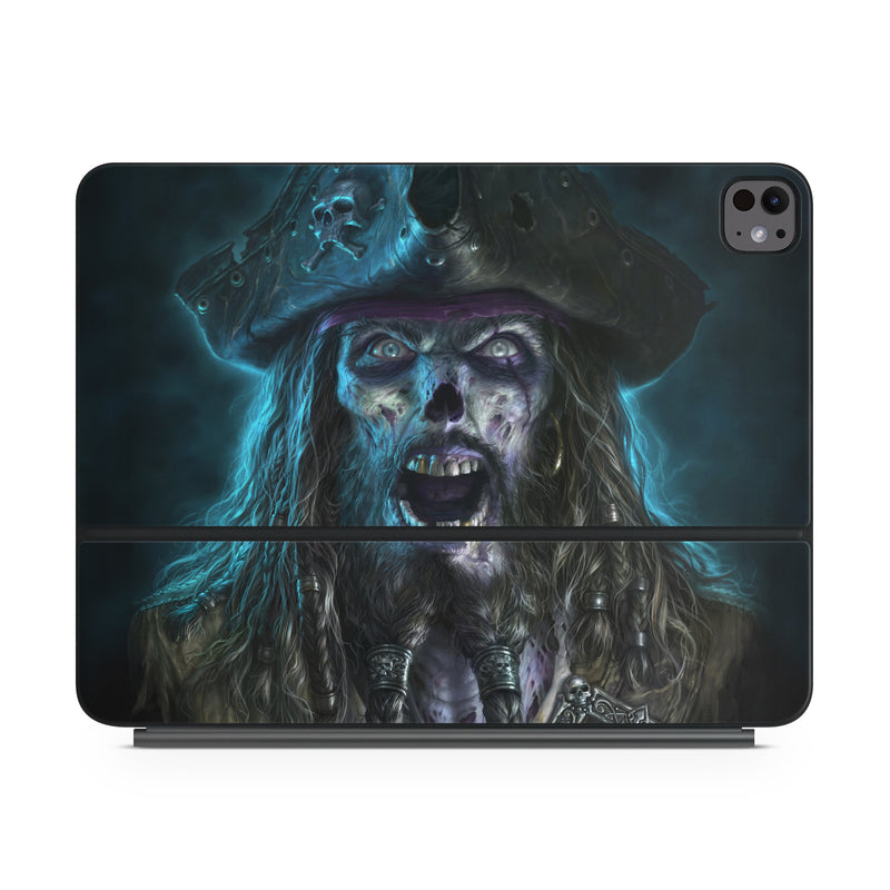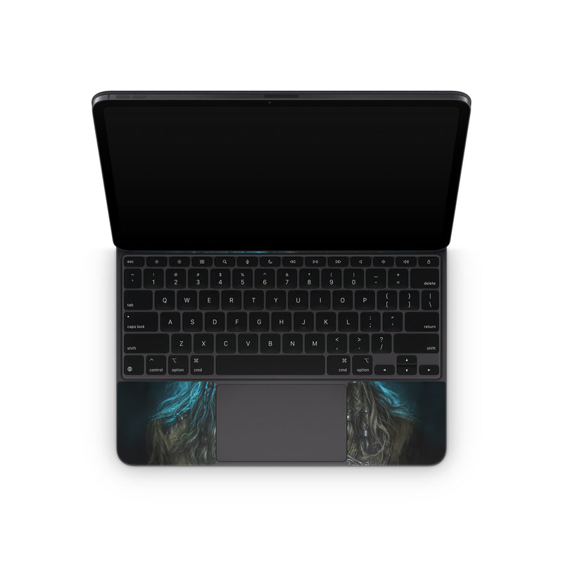 iStyles Magic Keyboard for iPad Series Skin design of Darkness, Illustration, Art, Ghost, Fictional character, Beard, with black, white, blue, gray colors, and tagged with fantasy, skulls, people, fantasy, grimbeard, pirates.