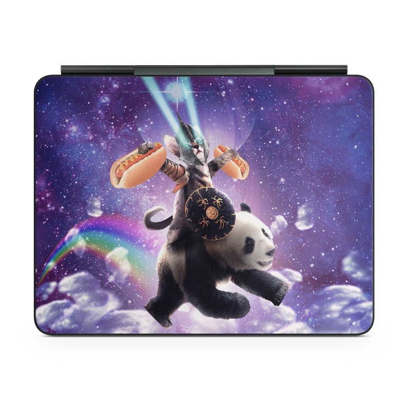 iStyles Magic Keyboard for iPad Series Skin design of Bear, Illustration, Outer space, Animated cartoon, Graphic design, Teddy bear, Space, Sky, Graphics, Fictional character, with black, white, blue, brown, gray, red, yellow, green, pink colors, and tagged with space, animals, fantasy, animals, funny, galaxy, lasers, random, space, weird.