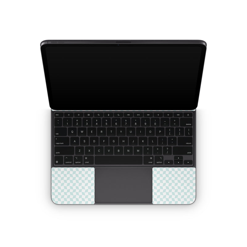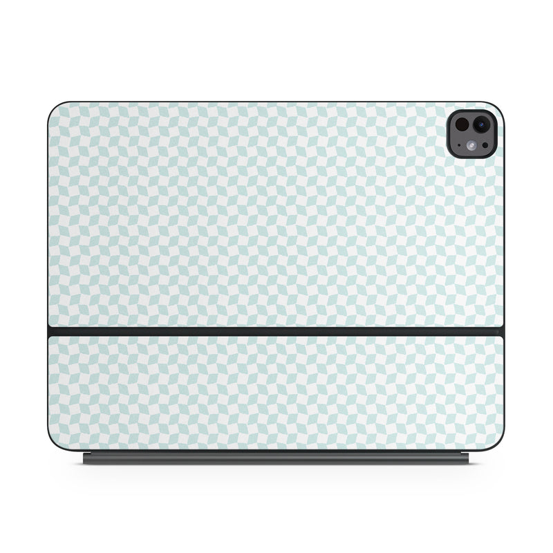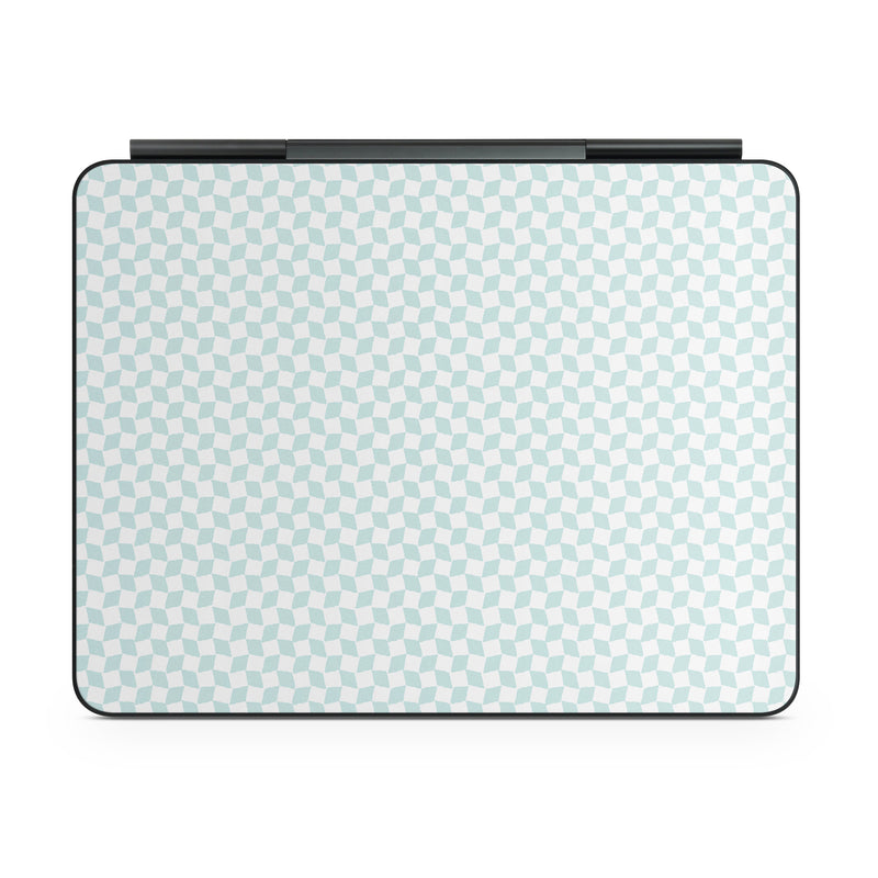 iStyles Magic Keyboard for iPad Series Skin design of Blue, Azure, Art, Font, Aqua, Rectangle, Floor, Flooring, Material property, Symmetry, with white, blue colors, and tagged with patterns, checkered, pattern.