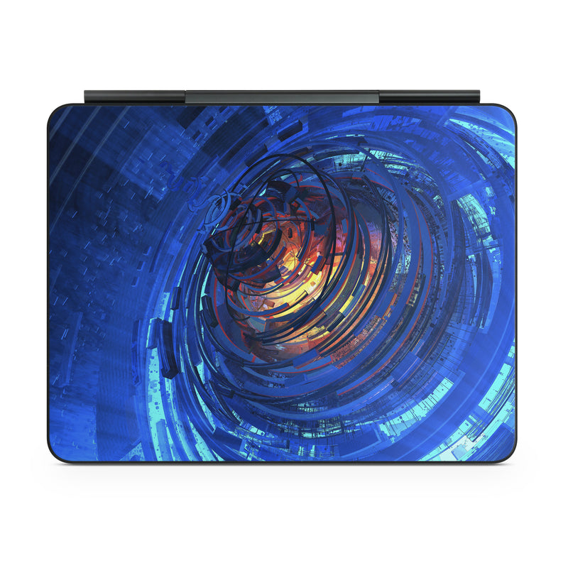 iStyles Magic Keyboard for iPad Series Skin design of Blue, Water, Circle, Vortex, Electric blue, Wave, Liquid, Graphics, Pattern, Colorfulness, with blue, orange, yellow colors, and tagged with abstract.