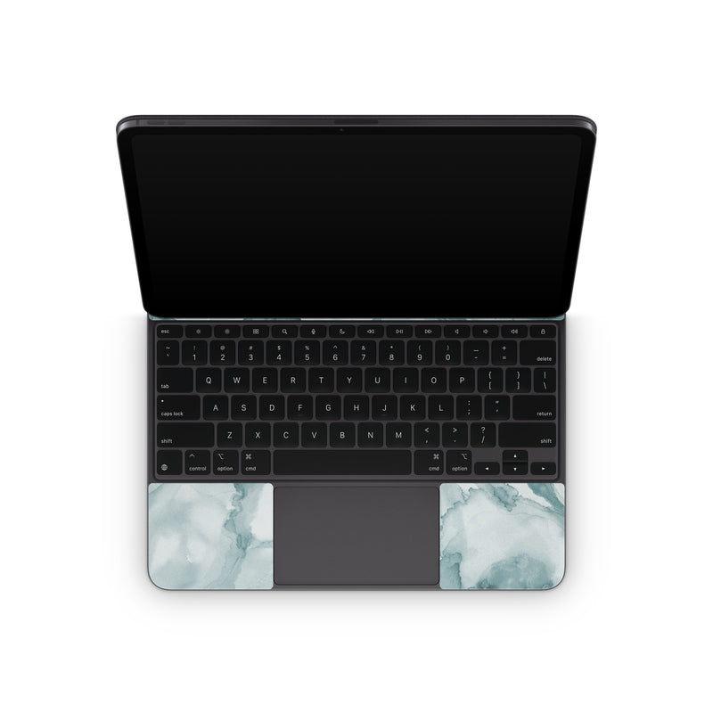 iStyles Magic Keyboard for iPad Series Skin design of Liquid, Fluid, Snow, Polar ice cap, Ice cap, Aqua, Melting, Glacial landform, Arctic ocean, Pattern, with blue, gray, white colors, and tagged with patterns, abstract, paint, painting, water, watercolor.