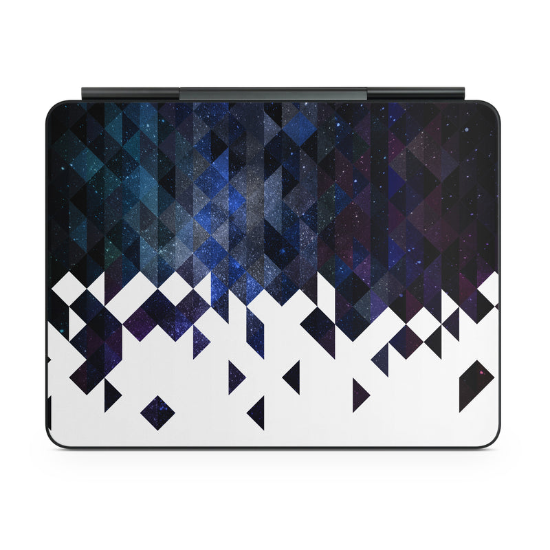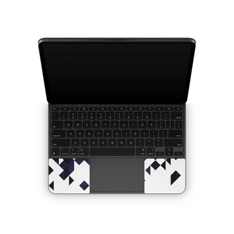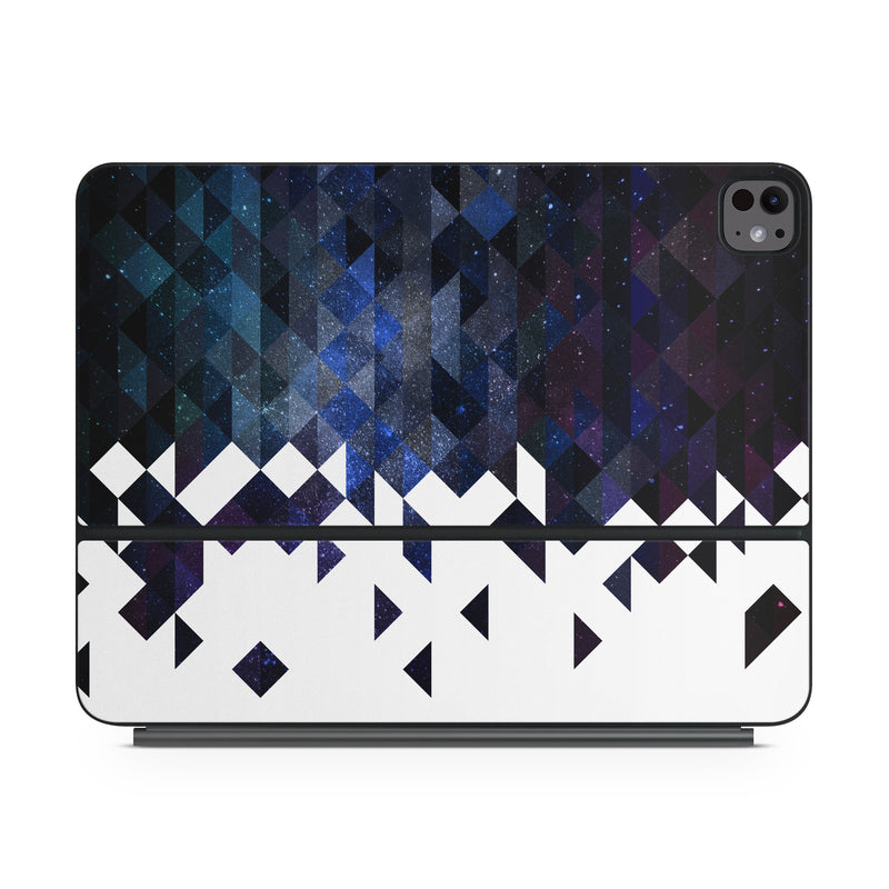 iStyles Magic Keyboard for iPad Series Skin design of Text, Pattern, Graphic design, Font, Purple, Design, Line, Triangle, Logo, Graphics, with black, blue, white colors, and tagged with patterns, space, geometry, space, stars, triangles.