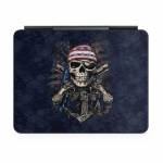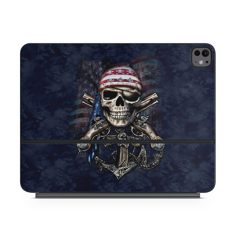 iStyles Magic Keyboard for iPad Series Skin design of Skull, Bone, Skeleton, Illustration, Outerwear, T-shirt, Flag, Art, with black, gray, red colors, and tagged with skulls, flags, objects.