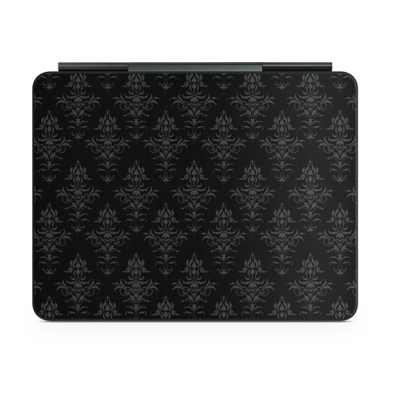 iStyles Magic Keyboard for iPad Series Skin design of Black, Pattern, Design, Monochrome, Black-and-white, Darkness, Monochrome photography, Symmetry, with black, gray colors, and tagged with skulls, patterns.