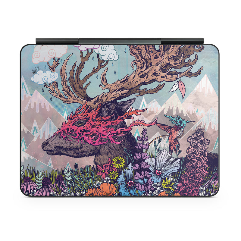 iStyles Magic Keyboard for iPad Series Skin design of Illustration, Tree, Watercolor paint, Painting, Art, Plant, Acrylic paint, Fictional character, Flower, Blossom, with gray, black, red, purple, blue colors, and tagged with animals, flowers, nature, abstract.