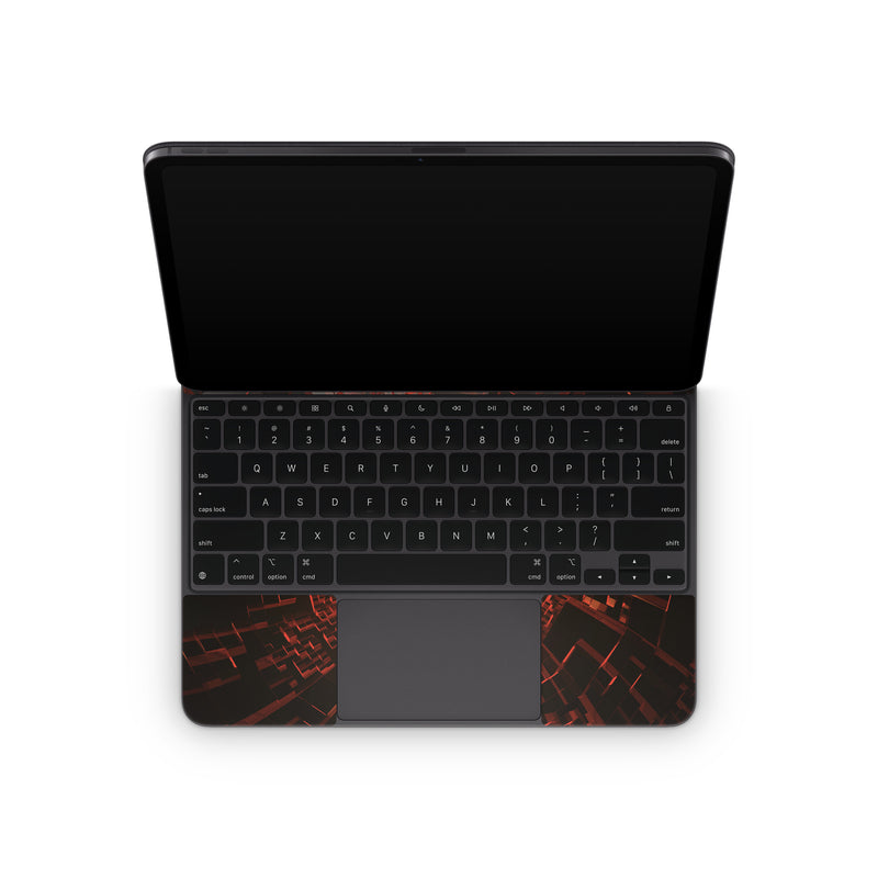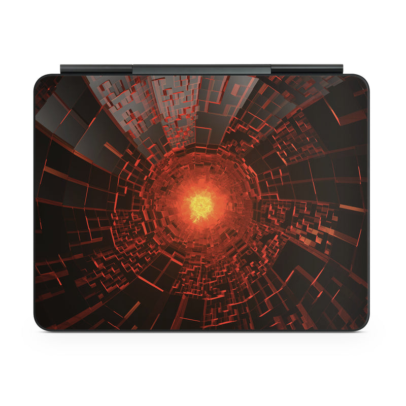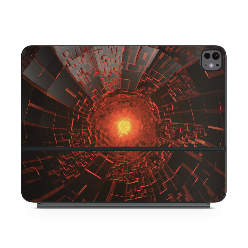 iStyles Magic Keyboard for iPad Series Skin design of Red, Fractal art, Light, Circle, Design, Art, Graphics, Symmetry, Pattern, Space, with black, red colors, and tagged with patterns.