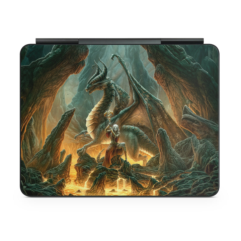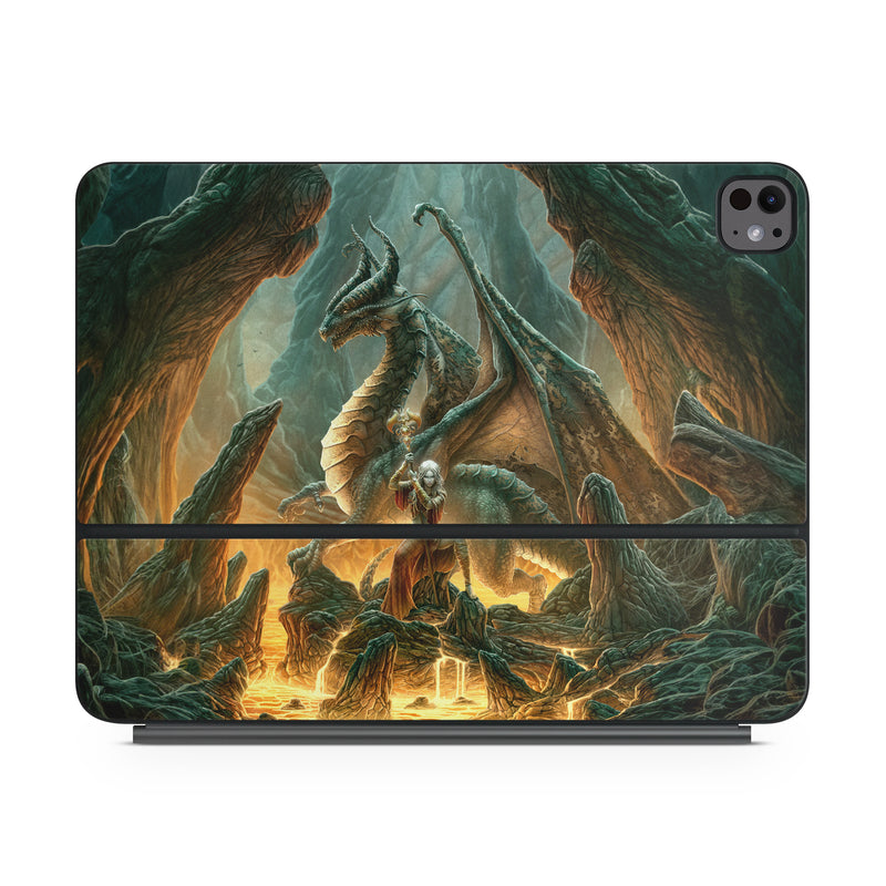 iStyles Magic Keyboard for iPad Series Skin design of Dragon, Cg artwork, Mythology, Fictional character, Mythical creature, Art, Illustration, Cryptid, Sculpture, Demon, with black, green, red, gray, blue colors, and tagged with fantasy.