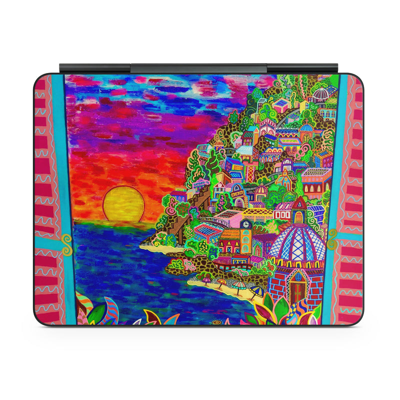 iStyles Magic Keyboard for iPad Series Skin design of Art, Modern art, Visual arts, Painting, with red, blue, yellow, purple, white, green, orange colors, and tagged with fineart, urban, objects, collage, italian, italy, paint, painting, travel, watercolor.