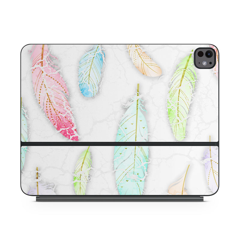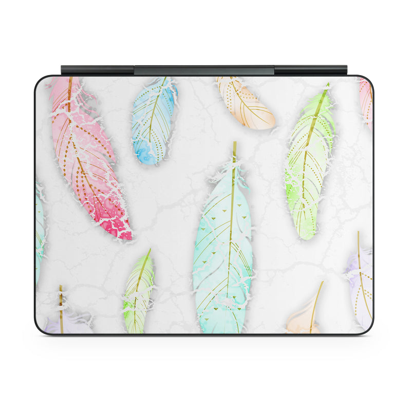 iStyles Magic Keyboard for iPad Series Skin design of Feather, Fashion accessory, Jewellery, with red, blue, green, purple, white, brown colors, and tagged with patterns, objects, aztec, color, feather, feathers, marble, pastel, watercolor.
