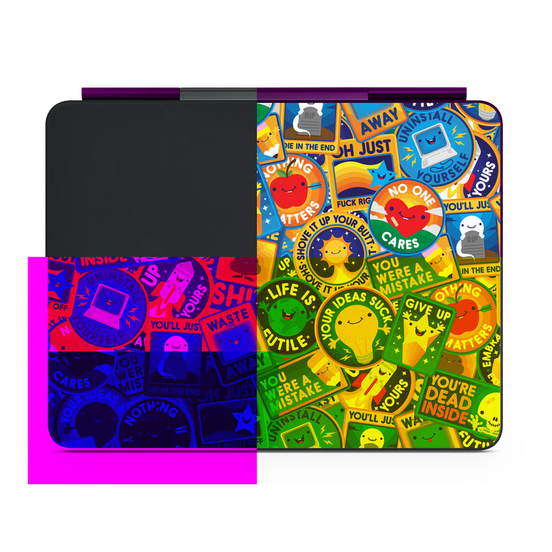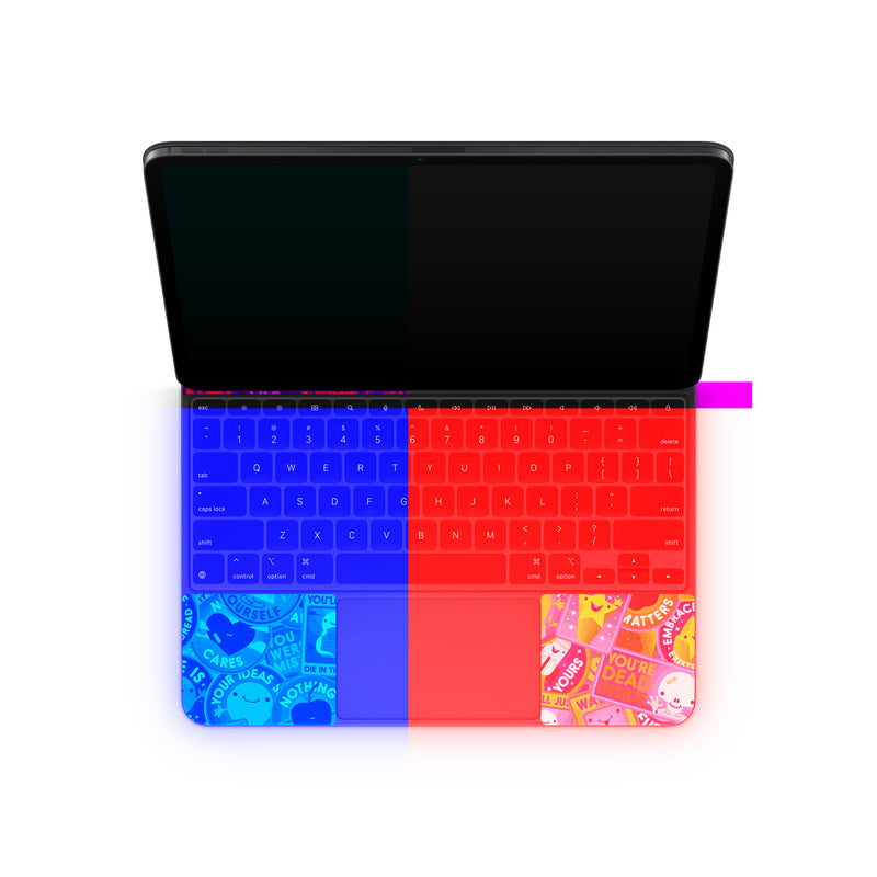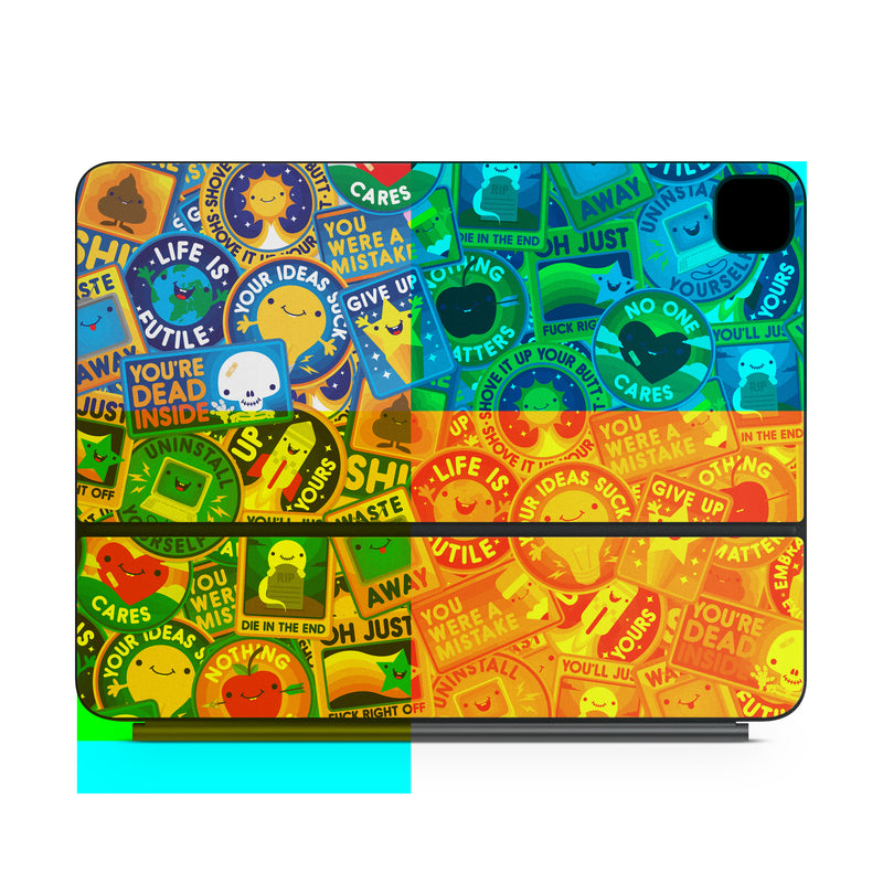 iStyles Magic Keyboard for iPad Series Skin design of Pattern, Visual arts, Design, Art, Mosaic, Psychedelic art, with blue, yellow, orange, white, green, red, gray colors, and tagged with patterns, signs, space, objects, hearts, fuck, funny, humor.