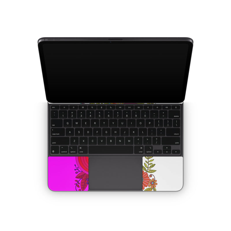 iStyles Magic Keyboard for iPad Series Skin design of Botany, Flower, Font, Creative arts, Petal, Circle, Pattern, Art, Visual arts, Floral design, with white, red, yellow, orange, green, blue colors, and tagged with flowers, signs, flowers, rainbow, empower, women, around, you.