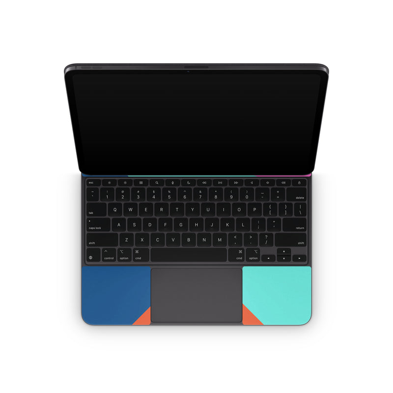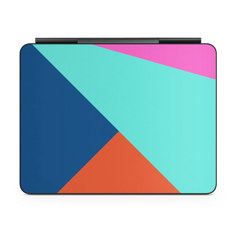 iStyles Magic Keyboard for iPad Series Skin design of Blue, Colorfulness, Turquoise, Line, Azure, Triangle, Pattern, Graphic design, Magenta, with blue, pink, orange, red colors, and tagged with patterns, block, blocking, color, colorblock, geometric, shape, simple.