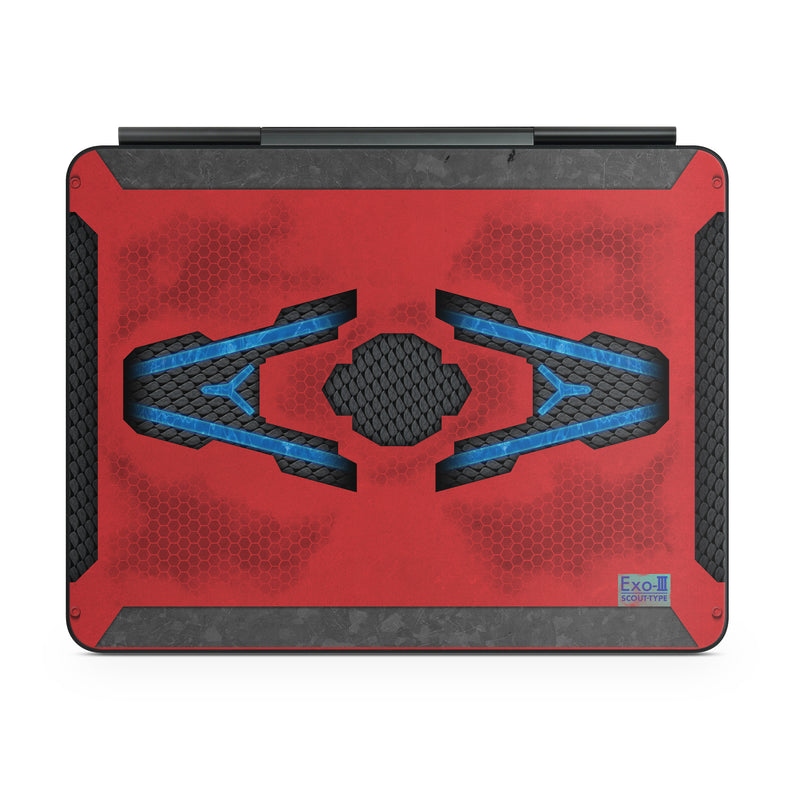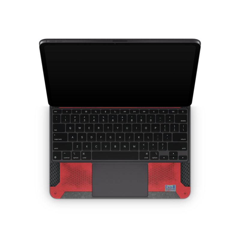iStyles Magic Keyboard for iPad Series Skin design of Red, Symbol, Graphics, with black, gray, red, blue colors, and tagged with lookslike, military, fantasy, spaceship, alien.
