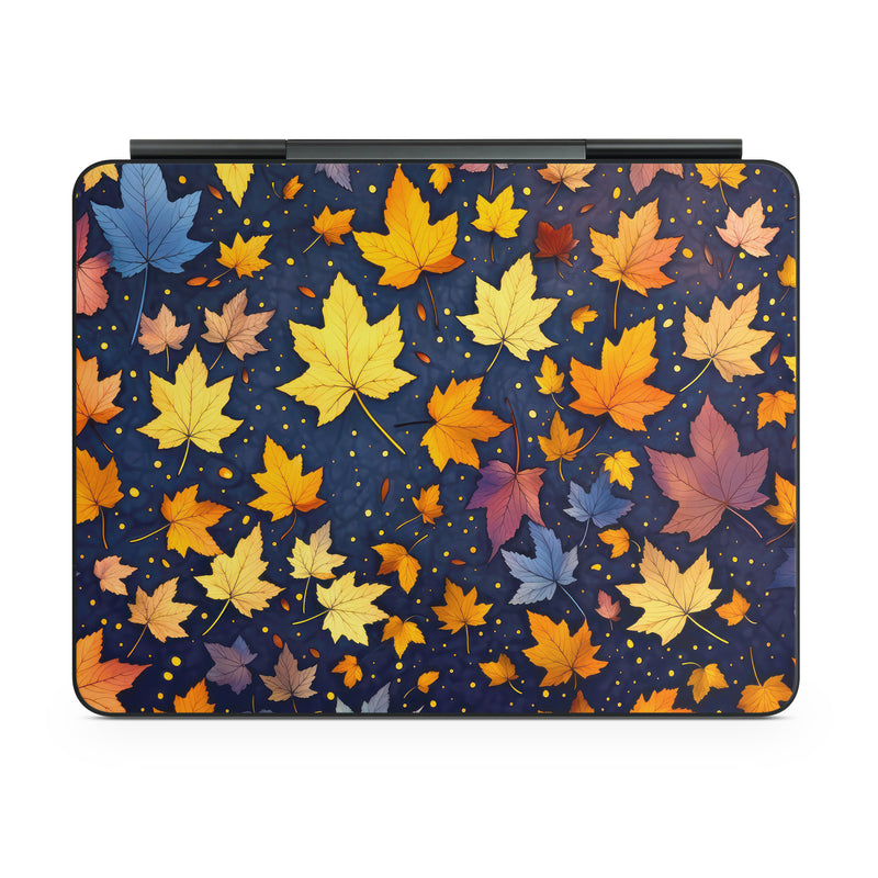 iStyles Magic Keyboard for iPad Series Skin design of Orange, Line, Pattern, Electric blue, Symmetry, Groundcover, Flowering plant, Design, Flower, Art, with yellow, orange, red, black, blue, purple colors, and tagged with nature, patterns, autumn, fall, leaves.