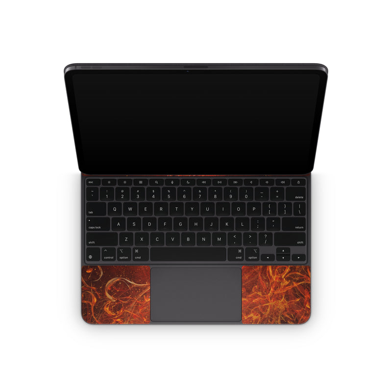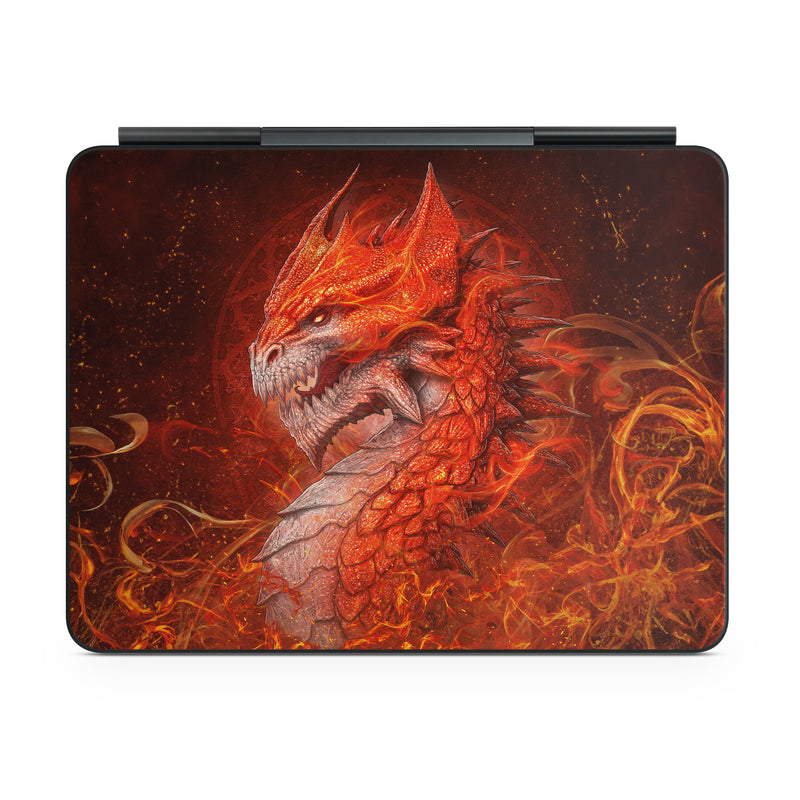 iStyles Magic Keyboard for iPad Series Skin design of Fictional character, Cg artwork, Illustration, Art, Demon, Geological phenomenon, Mythical creature, Dragon, Cryptid, with red, orange, yellow colors, and tagged with fantasy, animals.
