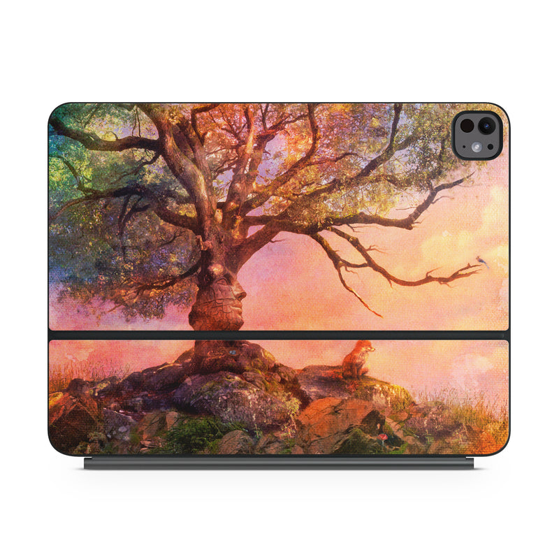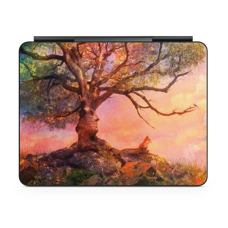 iStyles Magic Keyboard for iPad Series Skin design of Nature, Tree, Sky, Natural landscape, Branch, Leaf, Woody plant, Trunk, Landscape, Plant, with pink, red, black, green, gray, orange colors, and tagged with fineart, animals, fantasy, nature.