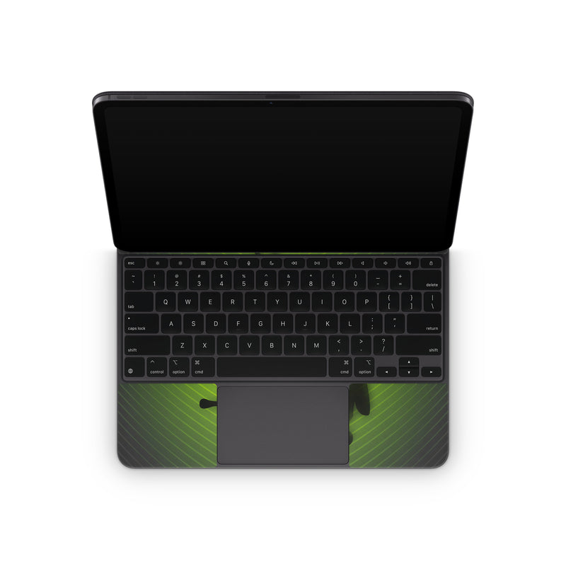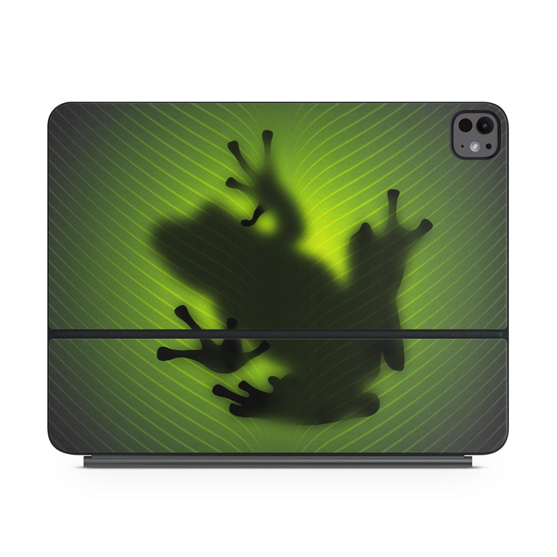 iStyles Magic Keyboard for iPad Series Skin design of Green, Frog, Tree frog, Amphibian, Shadow, Silhouette, Macro photography, Illustration, with green, black colors, and tagged with animals.