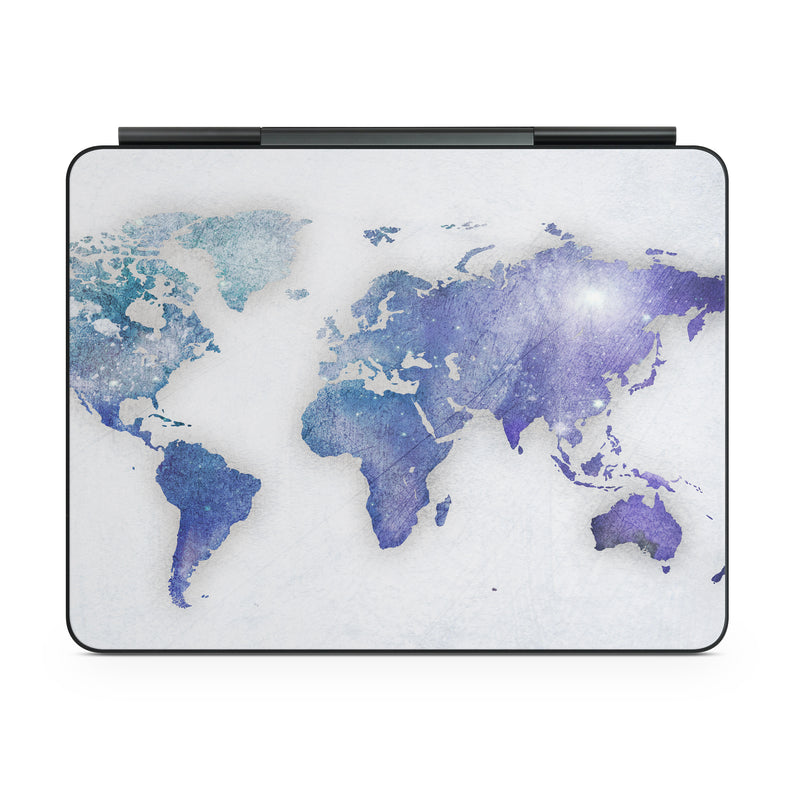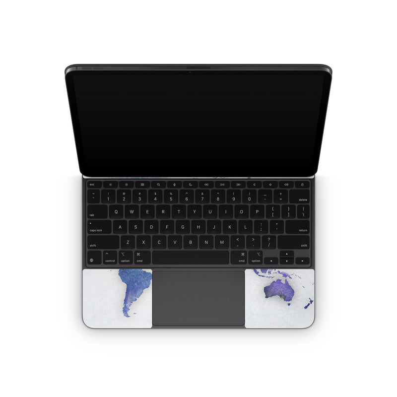 iStyles Magic Keyboard for iPad Series Skin design of World, Map, Watercolor paint, Illustration, with white, blue, purple colors, and tagged with maps, globe, map, pastel, travel, watercolor, world.