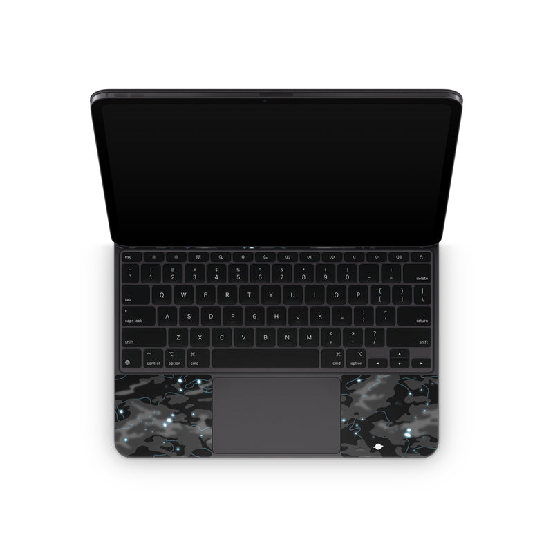 iStyles Magic Keyboard for iPad Series Skin design of Black, Water, Space, Black-and-white, Granite, with blue, white, gray, blue colors, and tagged with space, patterns, black, blue, camo, galaxy, space, stars, universe.