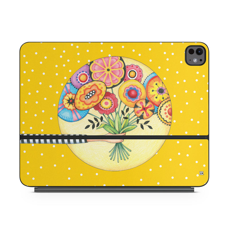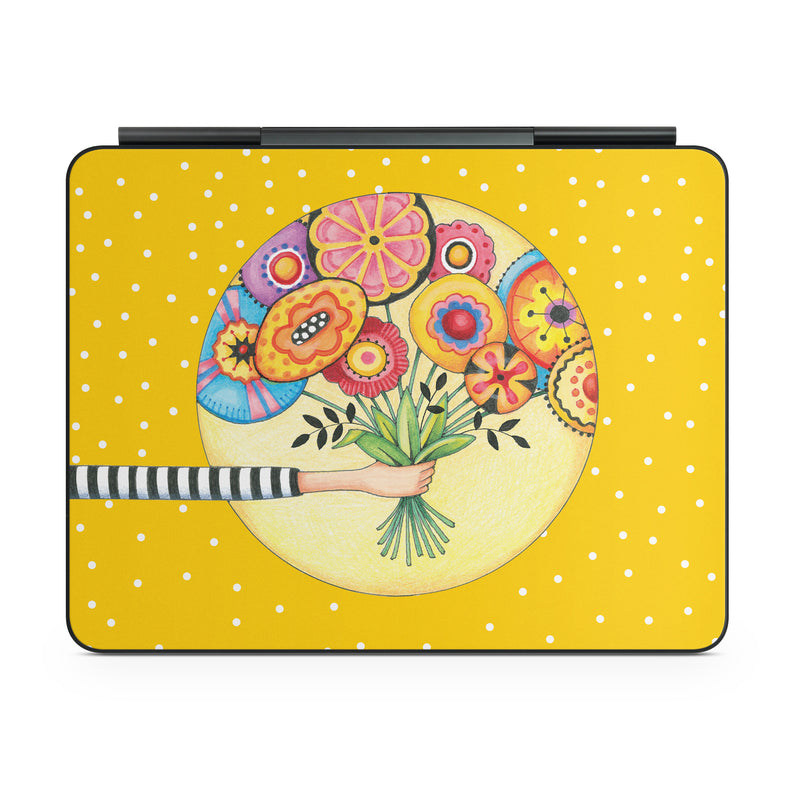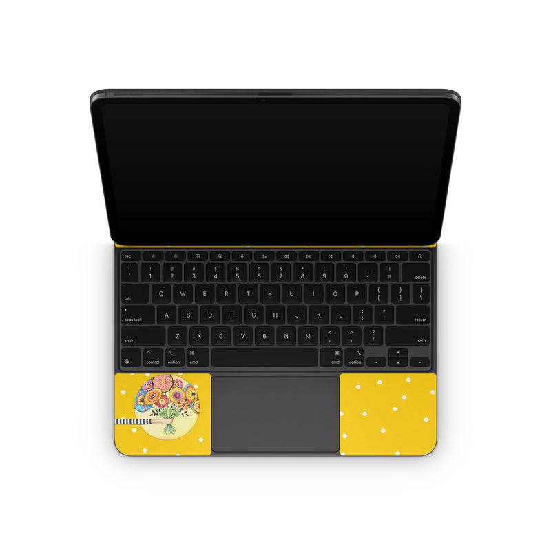 iStyles Magic Keyboard for iPad Series Skin design of Circle, Illustration, Clip art, Plant, with orange, yellow, pink, gray, green, black colors, and tagged with patterns, flowers.
