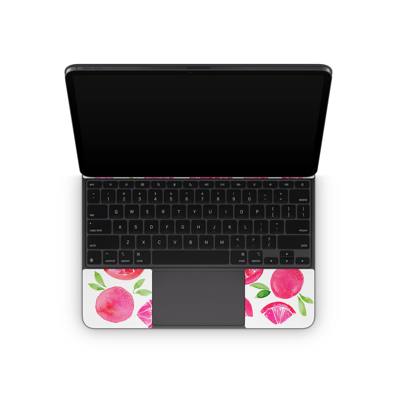 iStyles Magic Keyboard for iPad Series Skin design of Food, Plant, Fruit, Botany, Natural foods, Seedless fruit, Ingredient, Red, Font, Citrus, with pink, green, red, white colors, and tagged with patterns, objects, fruit, citrus.