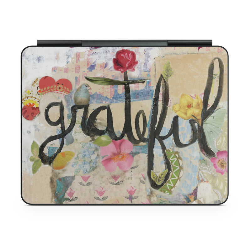 iStyles Magic Keyboard for iPad Series Skin design of Pink, Art, Modern art, Font, Textile, Illustration, Plant, Pattern, Flower, Still life, with red, blue, black, green, pink, yellow, brown colors, and tagged with signs, flowers, patterns, hearts, animals, encouragement, flowers, grateful, inspire, uplifting.