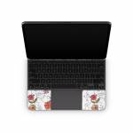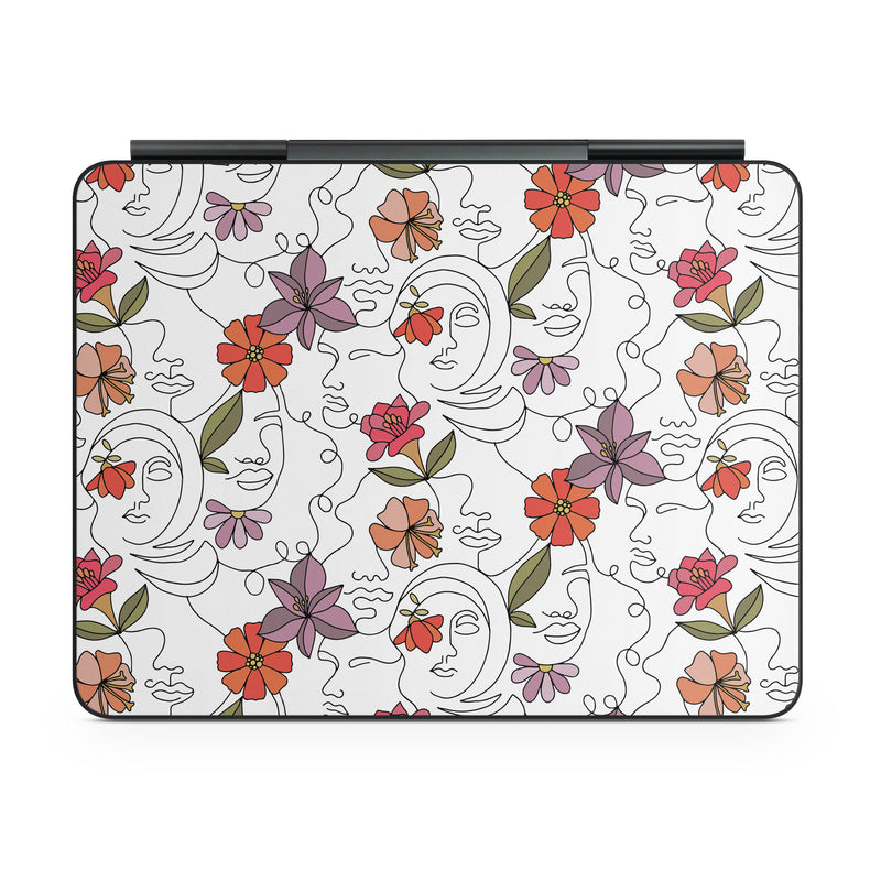 iStyles Magic Keyboard for iPad Series Skin design of Flower, Plant, White, Product, Petal, Branch, Rectangle, Botany, Textile, Creative arts, with white, red, purple, green, orange colors, and tagged with patterns, flowers, people, drawing, flowers, outline, pattern, women.
