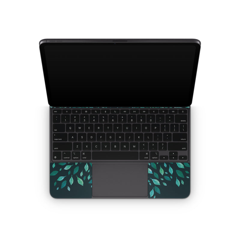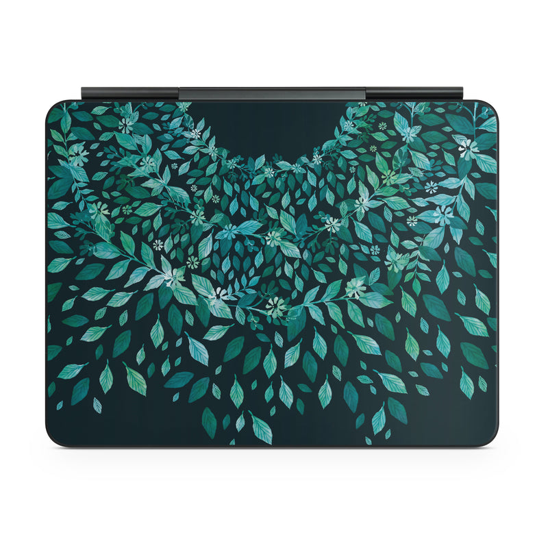 iStyles Magic Keyboard for iPad Series Skin design of Green, Aqua, Organism, Turquoise, Natural environment, Teal, Marine biology, Water, Leaf, Plant, with black, green, white colors, and tagged with patterns, nature, flowers, blue, flowers, green, leaves, nature, wreath.