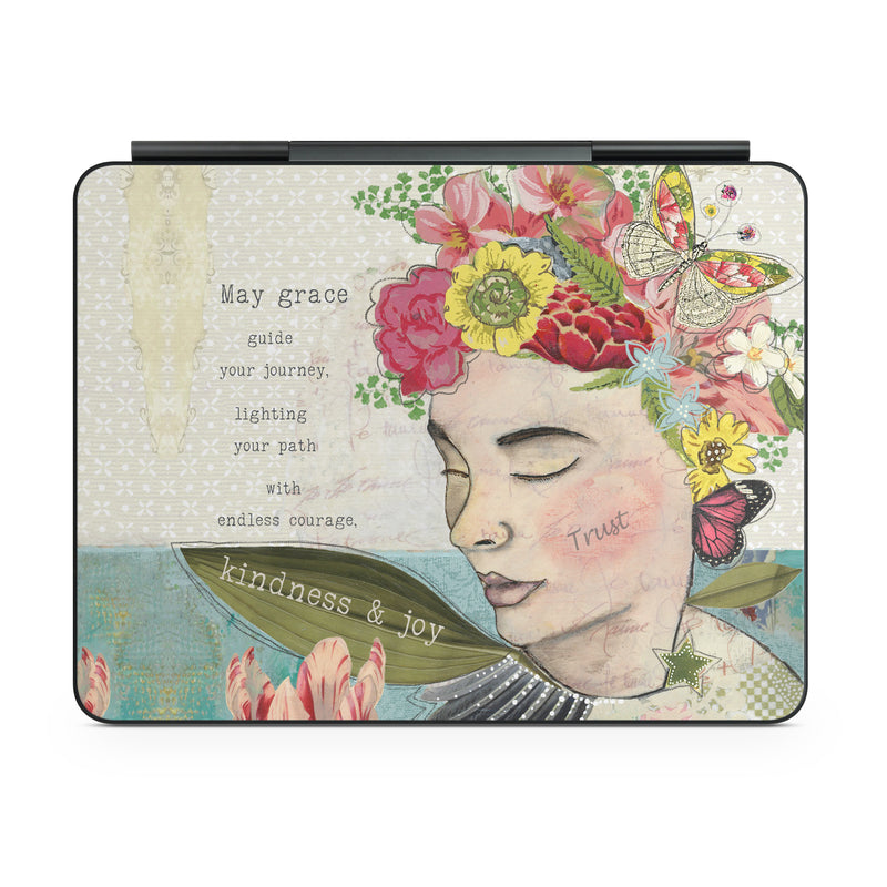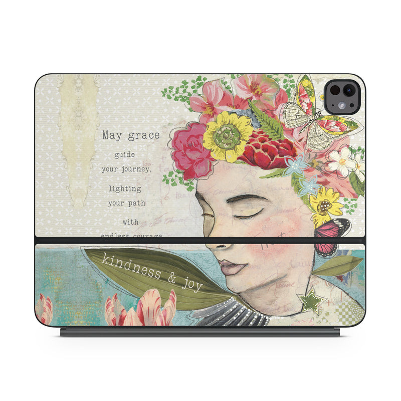 iStyles Magic Keyboard for iPad Series Skin design of Flower, Plant, Botany, Petal, Textile, Creative arts, Pink, Art, Painting, Poster, with blue, green, yellow, red, pink, white colors, and tagged with signs, flowers, animals, people, butterfly, flower, flowers, girl, inspiration, portrait, quote, quotes, woman.