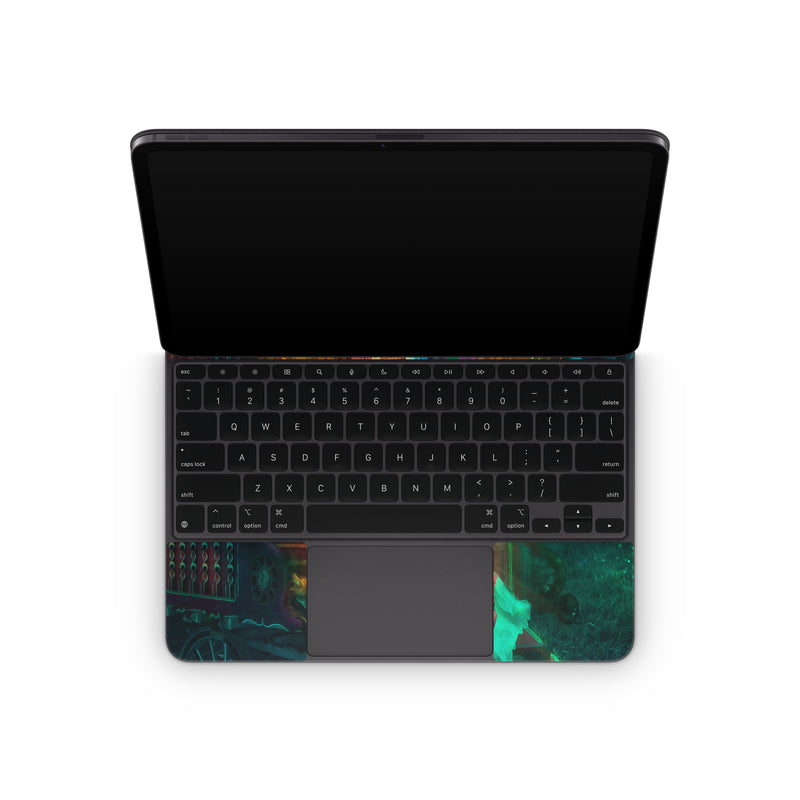 iStyles Magic Keyboard for iPad Series Skin design of Illustration, Adventure game, Darkness, Art, Digital compositing, Fictional character, Games, with black, red, blue, green colors, and tagged with fineart, animals, objects, people, urban.