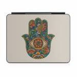 iStyles Magic Keyboard for iPad Series Skin design of Art, Pattern, Symmetry, Circle, Font, Visual arts, Illustration, Painting, Symbol, Drawing, with blue, red, yellow, orange, green colors, and tagged with patterns, flowers, signs, people, evileye, flowers, hand, protection.