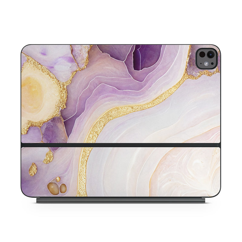 iStyles Magic Keyboard for iPad Series Skin design of Purple, Dishware, Violet, Art, Pattern, Serveware, Painting, Metal, Circle, Ceiling, with purple, white, yellow, orange colors, and tagged with patterns, lookslike, nature, marble, pattern, rock.
