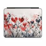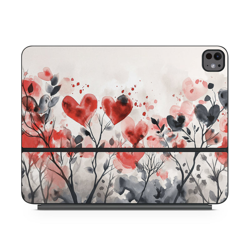 iStyles Magic Keyboard for iPad Series Skin design of Flower, Plant, Petal, Sky, Natural landscape, Twig, Tree, Art, Painting, Flowering plant, with white, black, gray, red, pink colors, and tagged with hearts, nature, plants, garden, hearts, love, valentine.