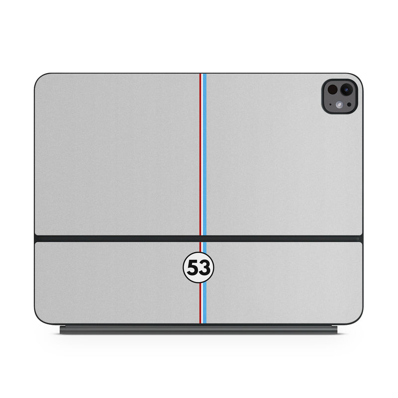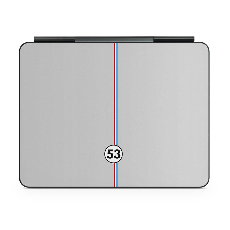 iStyles Magic Keyboard for iPad Series Skin design of Line, Sign, Games, with gray, blue, red, white, black colors, and tagged with lookslike, signs, racing, racer, 53, fifty, three.
