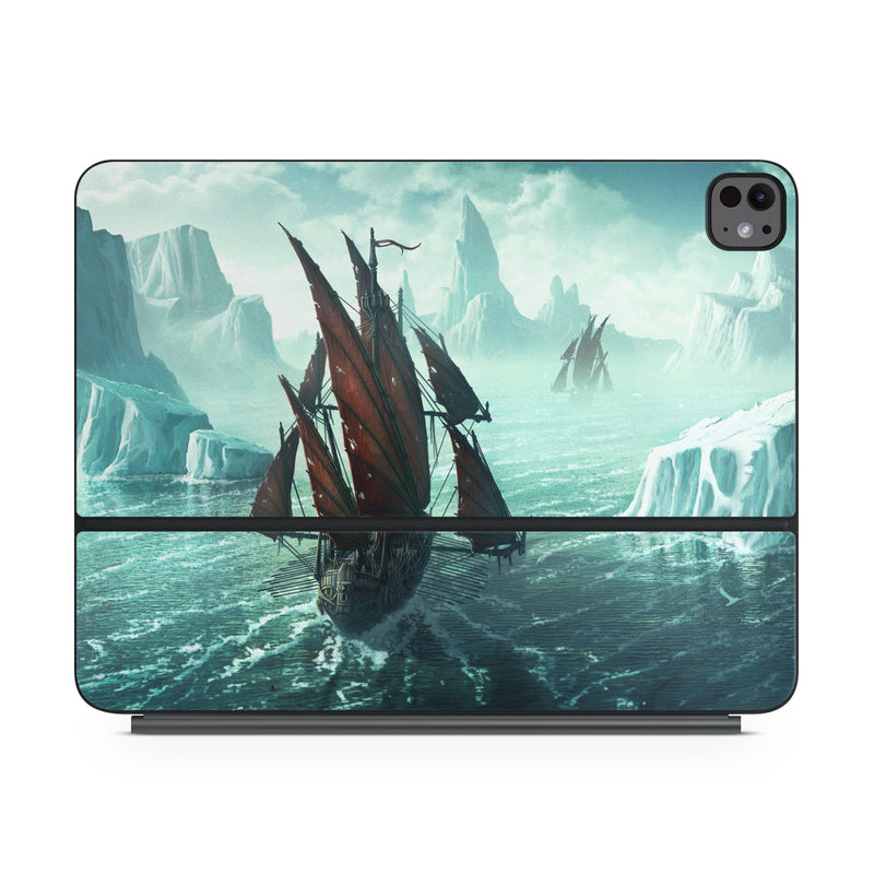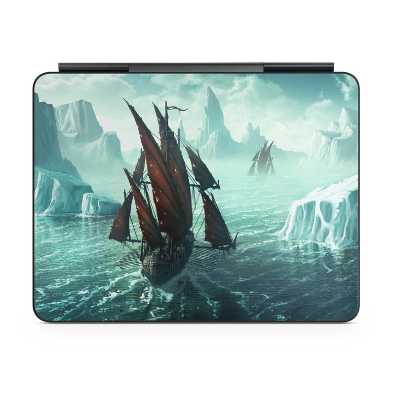 iStyles Magic Keyboard for iPad Series Skin design of Cg artwork, Vehicle, Ghost ship, Manila galleon, Fluyt, Adventure game, First-rate, Sailing ship, Mythology, Strategy video game, with gray, black, blue, green, white colors, and tagged with fantasy, objects, nature.