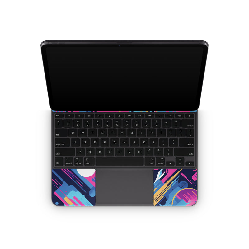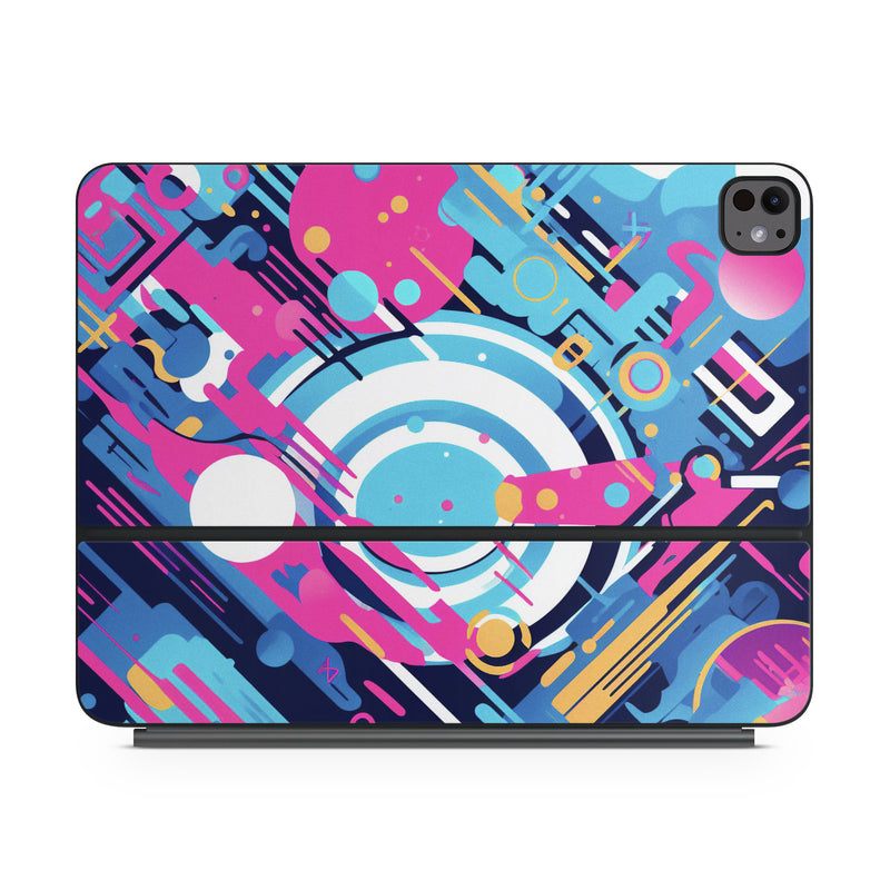 iStyles Magic Keyboard for iPad Series Skin design of Colorfulness, Font, Line, Material property, Art, Magenta, Pattern, Electric blue, Circle, Graphics, with blue, pink, black, white, orange colors, and tagged with abstract, abstract, circles, lines, dripping.