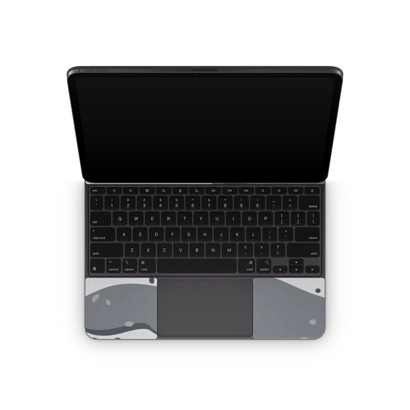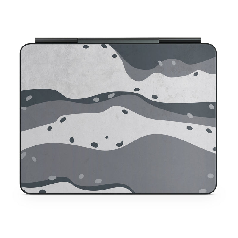 iStyles Magic Keyboard for iPad Series Skin design of White, Pattern, Water, Design, Illustration, Black-and-white, Metal, Drawing, Style, with black, white, gray colors, and tagged with patterns, military, camo, grey, steel.
