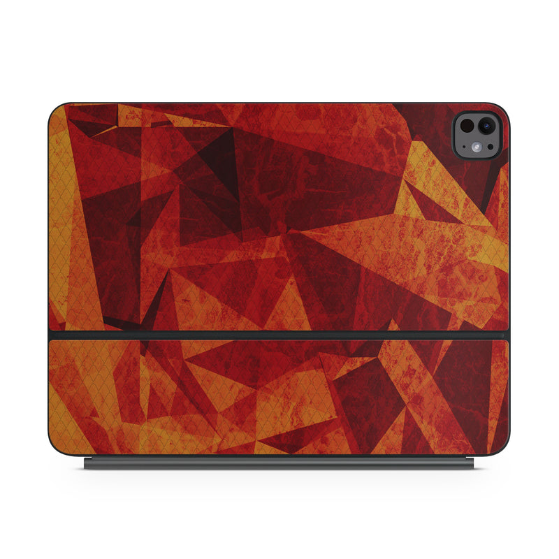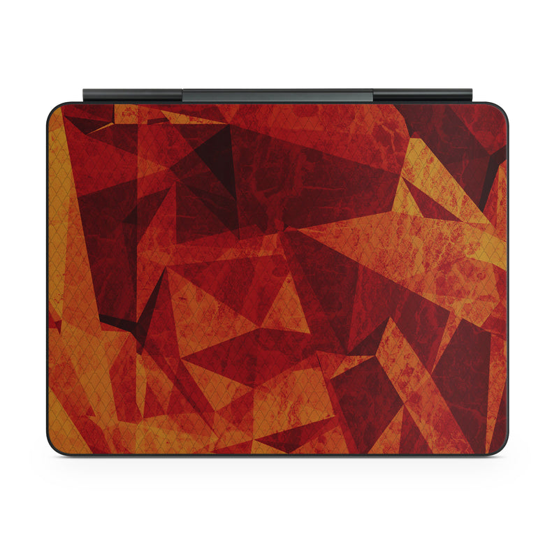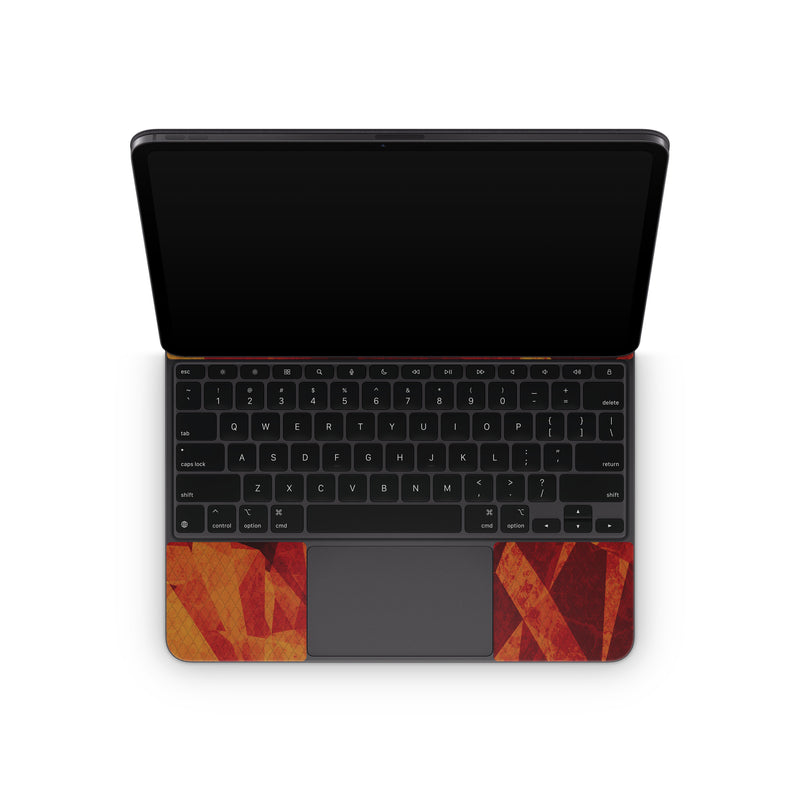 iStyles Magic Keyboard for iPad Series Skin design of Orange, Red, Yellow, Triangle, Pattern, Amber, Design, Art, Visual arts, Modern art, with black, orange, yellow colors, and tagged with patterns, lookslike, space, fantasy, digital, geometric, geometry, orange, red, snake.