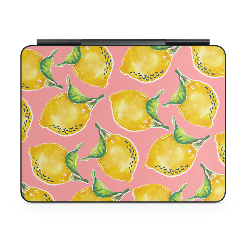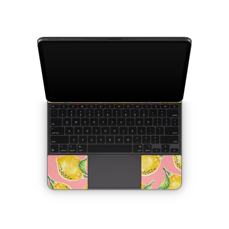 iStyles Magic Keyboard for iPad Series Skin design of Yellow, Plant, with yellow, green, pink colors, and tagged with patterns, objects, bright, food, fruit, lemon, pattern, summer, trendy.