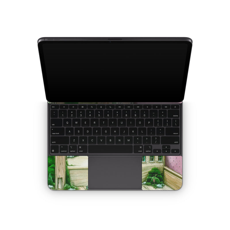 iStyles Magic Keyboard for iPad Series Skin design of Green, Stairs, House, Watercolor paint, Home, Illustration, Building, Wood, Plant, Sketch, with pink, green, brown colors, and tagged with objects, fineart, nature, urban, colinthompson, fineart, illustration, surreal.