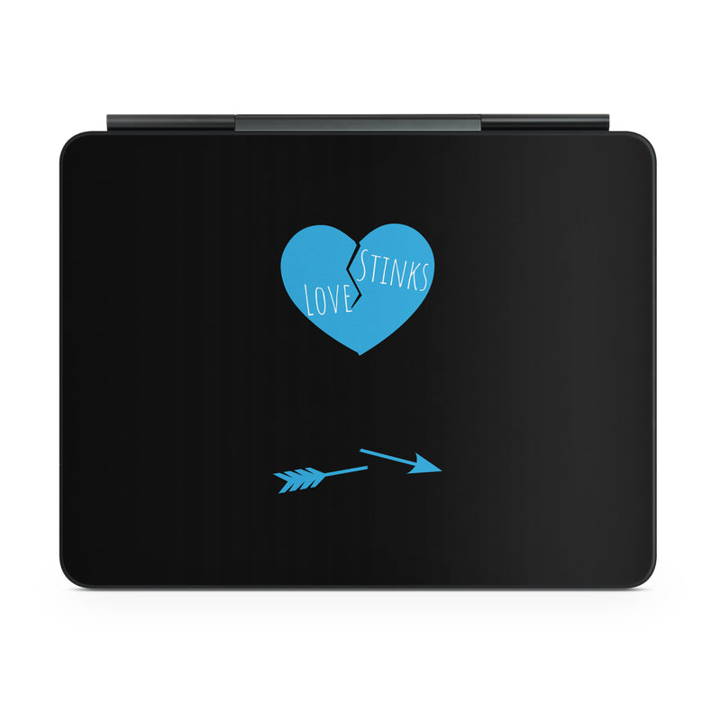 iStyles Magic Keyboard for iPad Series Skin design of Human body, Gesture, Font, Electric blue, Art, Magenta, Circle, Logo, Symbol, Pattern, with black, red, white colors, and tagged with objects, hearts, signs, broken, heart, arrow, love, stinks.