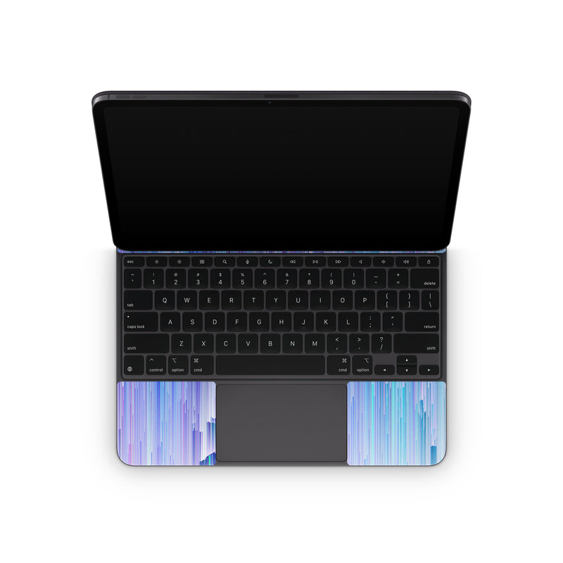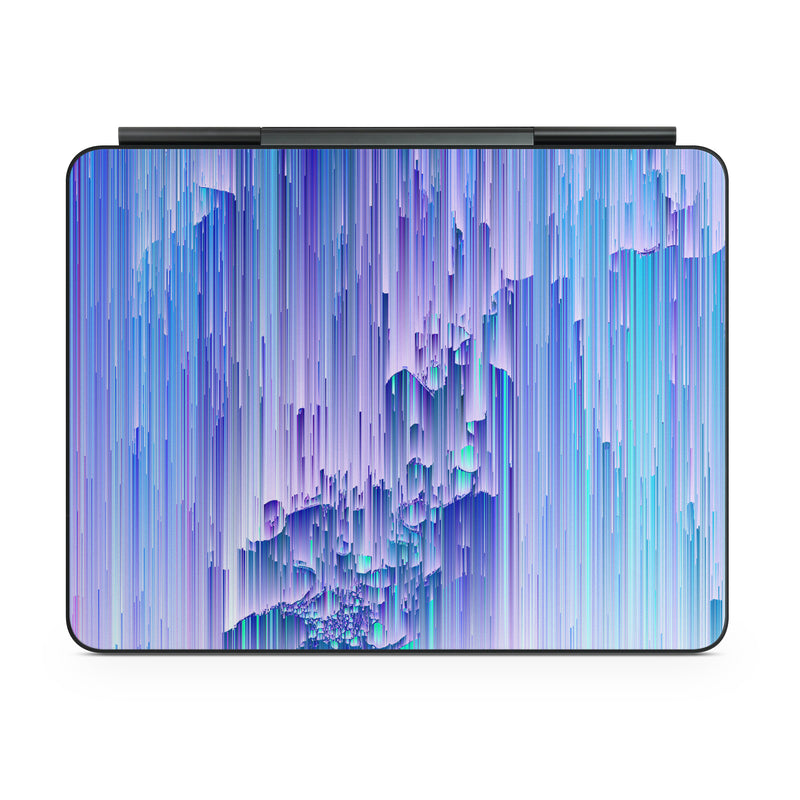 iStyles Magic Keyboard for iPad Series Skin design of Blue, Purple, Lavender, Ice, with blue, purple colors, and tagged with abstract, space, blue, geometric, geometry, glitch, green, line, pastel, purple, space, teal.