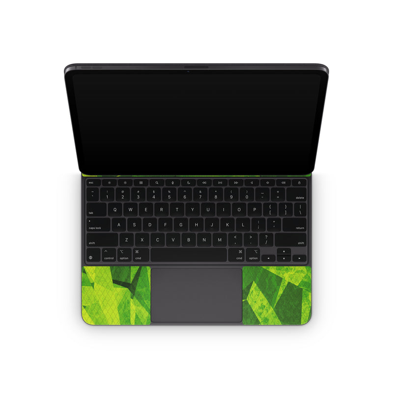 iStyles Magic Keyboard for iPad Series Skin design of Green, Pattern, Leaf, Design, Illustration, with green colors, and tagged with lookslike, space, fantasy, patterns, digital, geometric, geometry, green, snake.