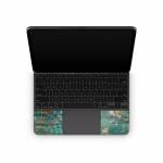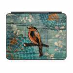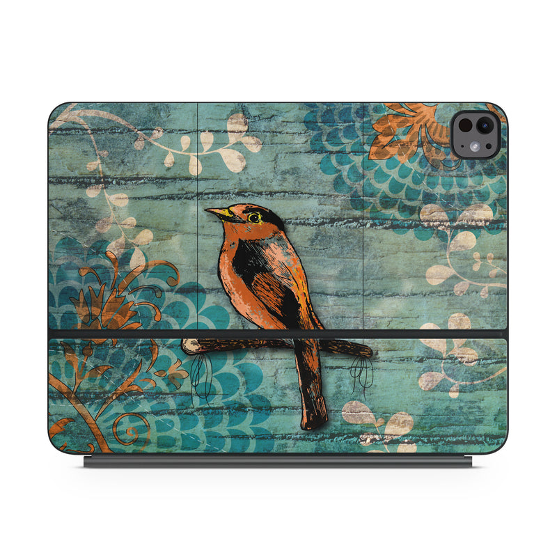 iStyles Magic Keyboard for iPad Series Skin design of Bird, Turquoise, Painting, Art, Coraciiformes, Branch, Beak, Wildlife, Perching bird, Illustration, with black, blue, gray, green, red colors, and tagged with animals, flowers, nature, patterns.