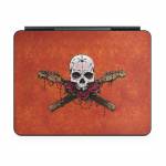iStyles Magic Keyboard for iPad Series Skin design of Sleeve, Orange, Skull, Font, Bone, Art, T-shirt, Symbol, Circle, Emblem, with black, white, gray, brown, red, green colors, and tagged with skulls, flowers, objects, music, guitar, roses, rock, roll.