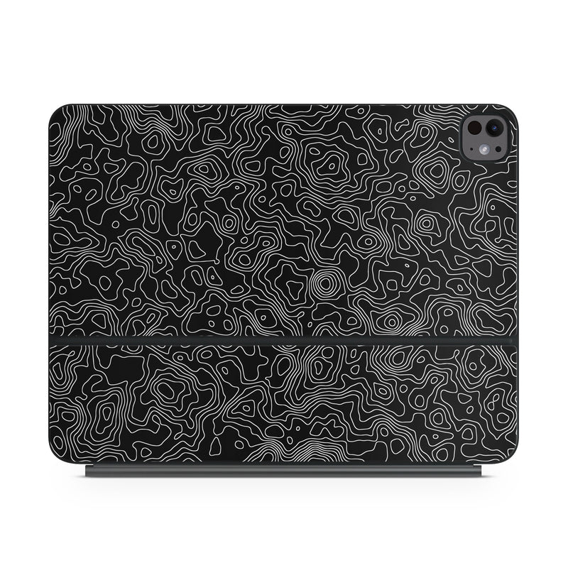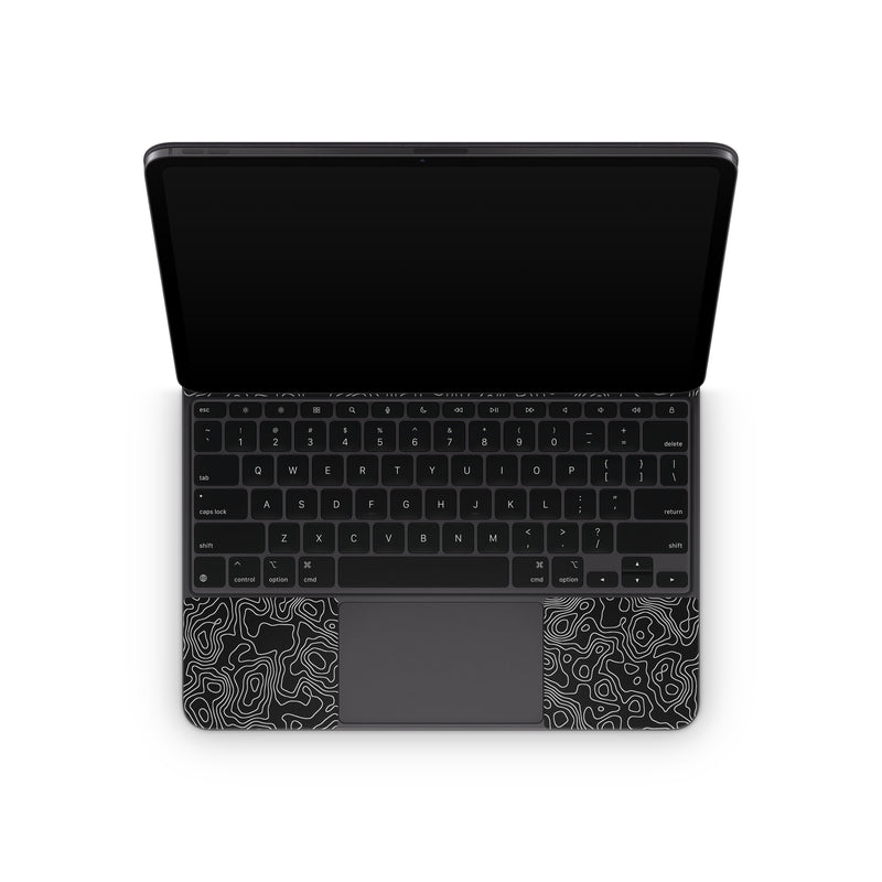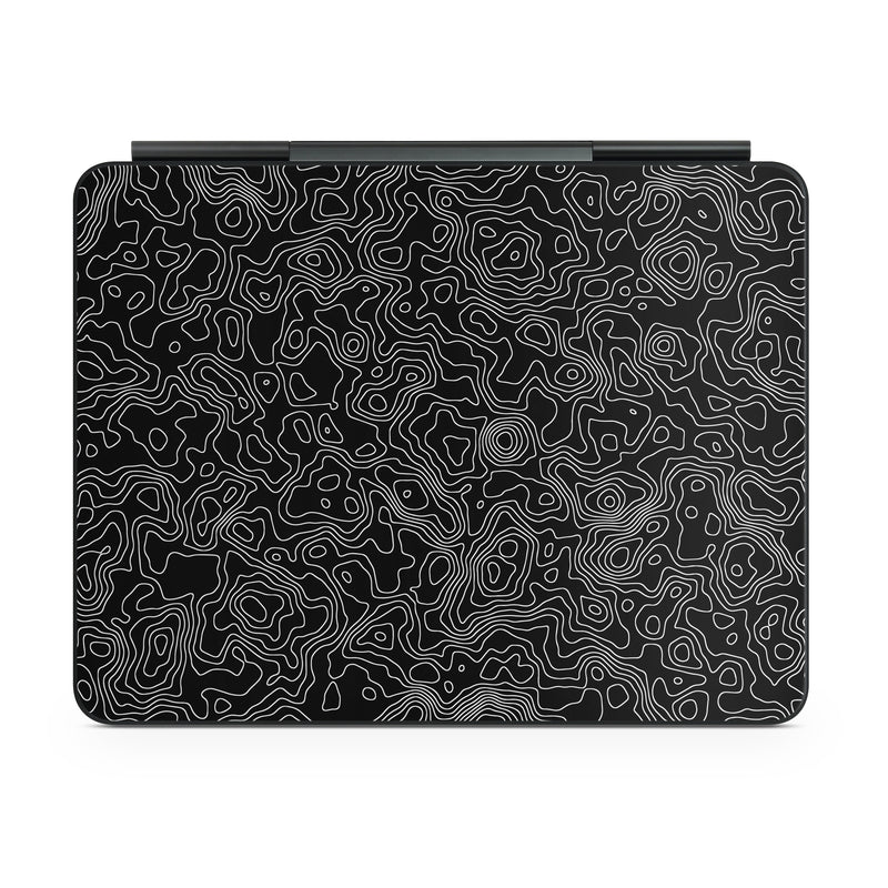 iStyles Magic Keyboard for iPad Series Skin design of Art, Motif, Pattern, Symmetry, Monochrome, Circle, Font, Visual arts, Illustration, Monochrome photography, with black, gray colors, and tagged with patterns, geography, map, outdoors, topo, topographic, topography, travel.