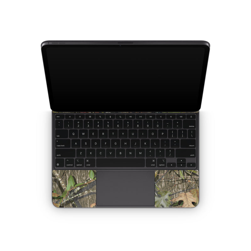 iStyles Magic Keyboard for iPad Series Skin design of Camouflage, Military camouflage, Tree, Plant, Leaf, Design, Adaptation, Branch, Pattern, Trunk, with black, green, gray, red colors, and tagged with nature.